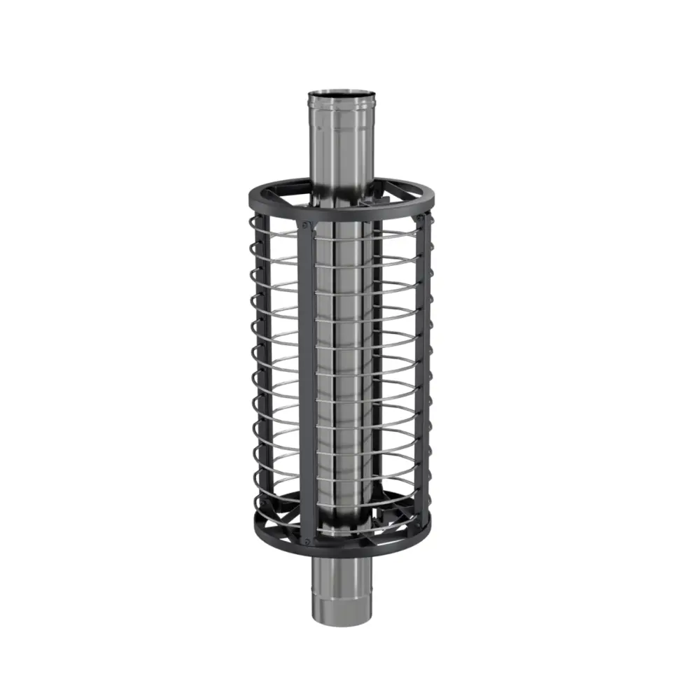 Сетка-каменка защищает от излучения, уменьшая поверхность открытой трубы, снимает тепло с ее стенок и направляет его на прогрев камней.