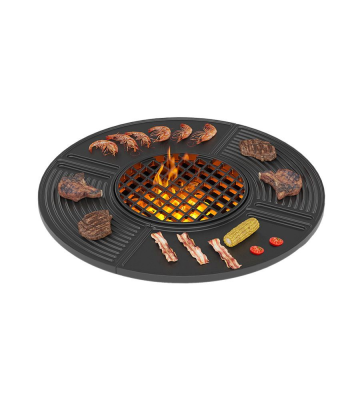 В середине плиты размещина чугунная решётка Везувий Стейк диаметром 314 мм. Эта решётка предназначена для готовки мяса и овощей с красивым диагональным рисунком