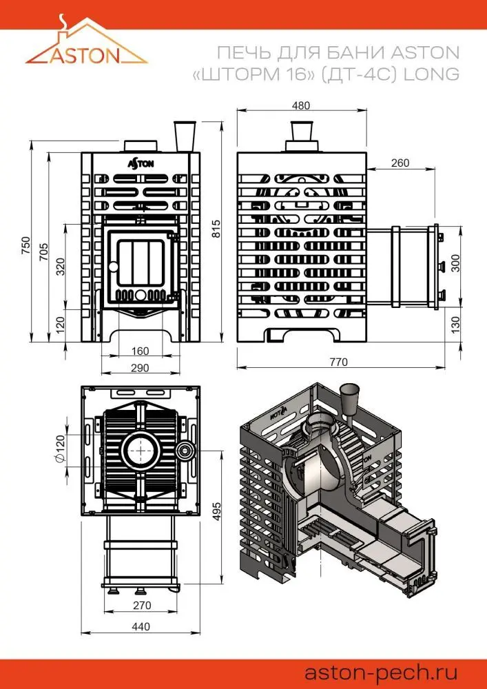 Печь для бани ASTON «Шторм 16» (ДТ-4С) Long