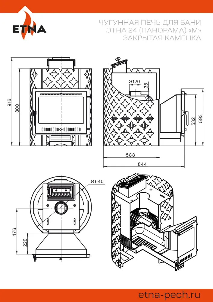 Диаметр дымохода: 120 мм