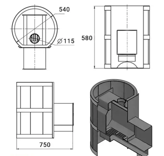 Сила духа этой парной несомненно в чугунной печи Атмосфера с закрытой каменкой из нержавейки. Впервые в планировке мы предлагаем два полка друг на против друга. Прекрасным дополнением служат абажуры резные в стиле Леший и разбросанные спилы можжевельника по всей парной. Данный дизайн часто применим для бани "Бочки"