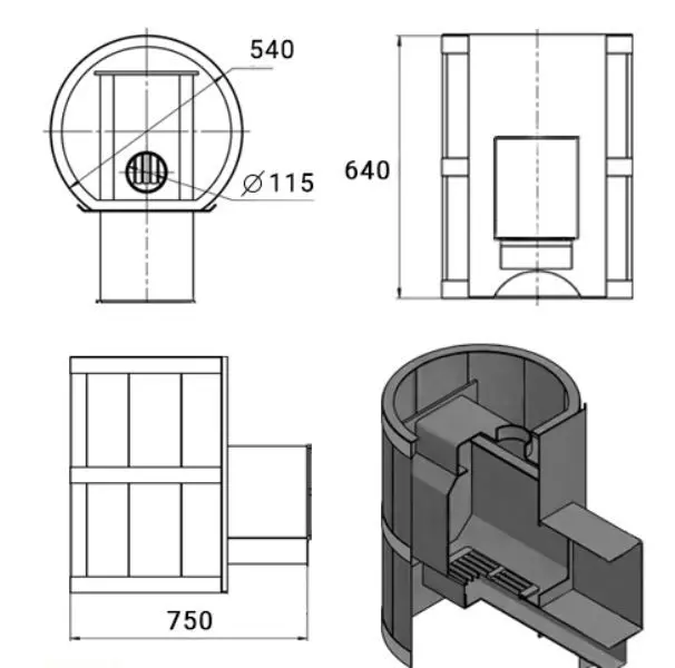 Сила духа этой парной несомненно в чугунной печи Атмосфера с закрытой каменкой из нержавейки. Впервые в планировке мы предлагаем два полка друг на против друга. Прекрасным дополнением служат абажуры резные в стиле Леший и разбросанные спилы можжевельника по всей парной. Данный дизайн часто применим для бани "Бочки"
