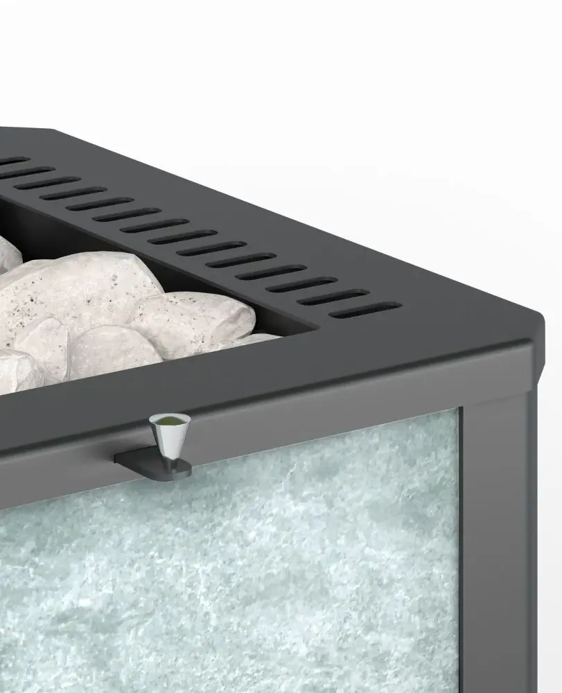 Конвекционно–вентилируемая облицовка, изготовленная из экологически чистой горной породы , который обладает большой теплоёмкостью, что позволяет камню в короткие сроки нагреваться и максимально долго удерживать стабильную температуру в парильном помещении, а также гасить жёсткое инфракрасное излучение Камень обладает исключительными лечебными свойствами: помогает при головных болях, при нестабильном артериальном давлении, при простудных заболеваниях, воспалительных процессах в почках и пищеварительной системе, снимает повышенную возбудимость и нервозность.