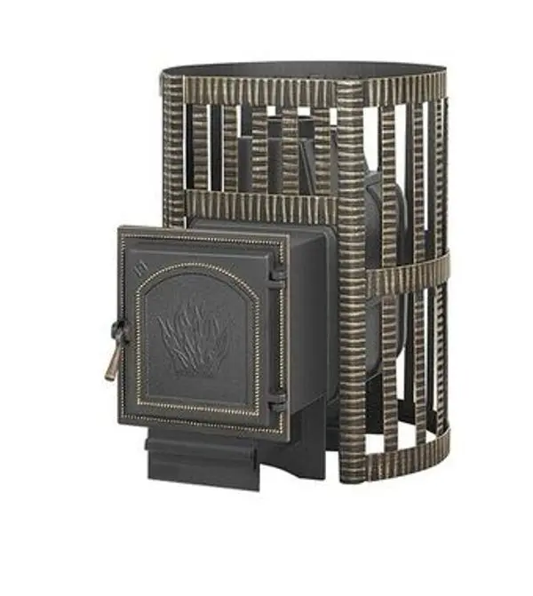 Банная чугунная печь Легенда Ковка 22 (271) укомплектована чугунной герметичной дверцей Везувий 271. Конвекционно-вентилируемый кожух "Ковка" изготовлен из металлической текстурированной полосы покрашенной термостойкой краской и покрытая патиной «Бронза».