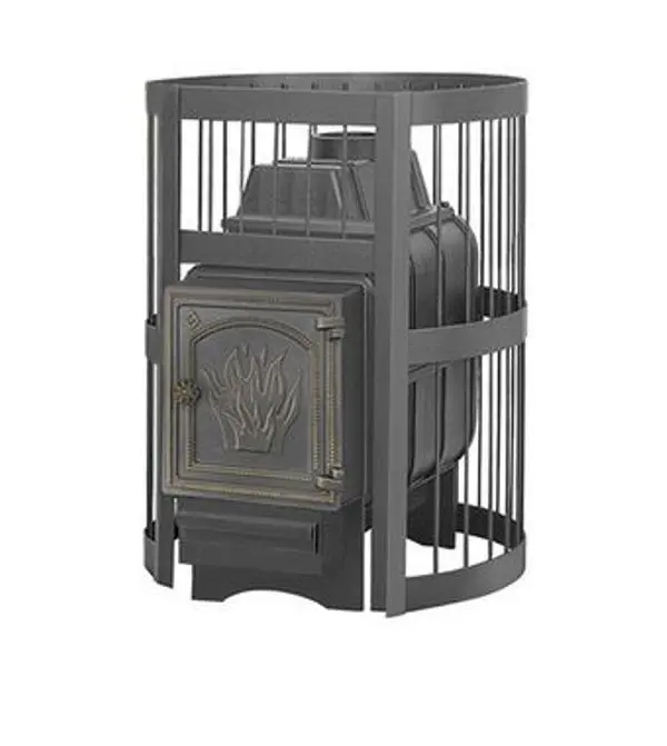 Банная чугунная печь Легенда Стандарт 22 (ДТ-4) укомплектована чугунной не герметичной дверцей Везувий ДТ-4. Конвекционно-вентилируемый кожух "Стандарт" изготовлен из металлического прутка диаметром 6мм покрашенной черной термостойкой краской.