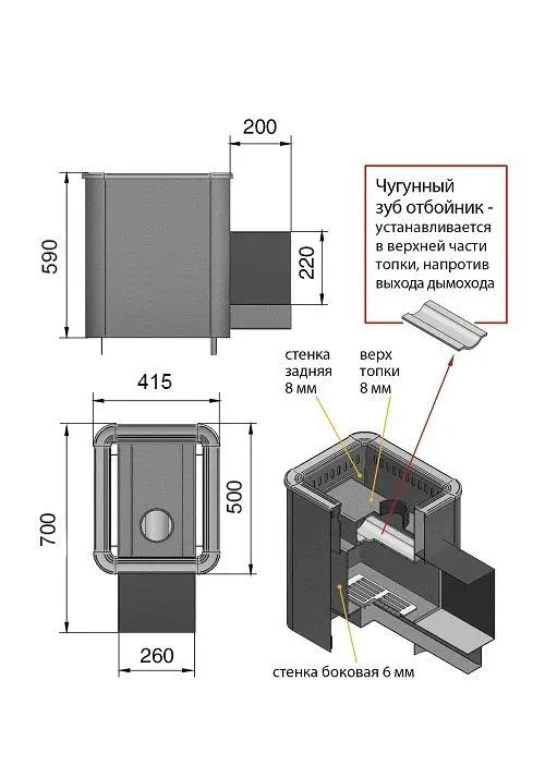 5. Конвекционно-вентилируемый кожух вмещающий до 50кг камней
