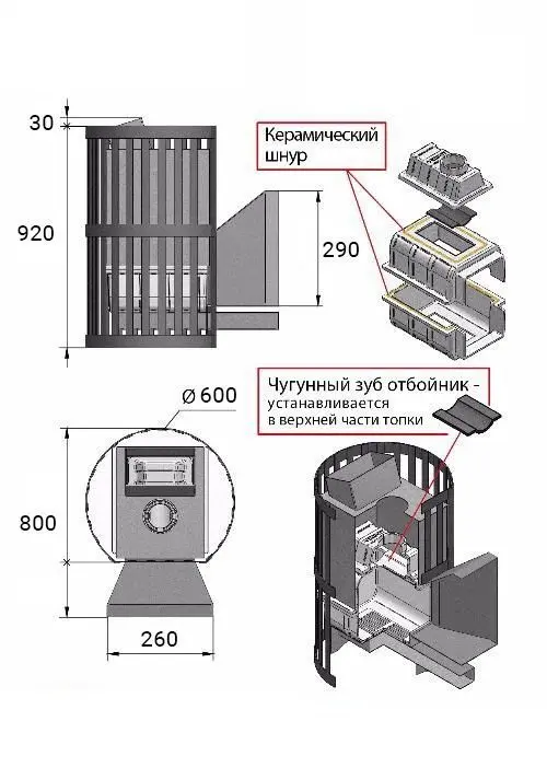 Банная чугунная печь Ураган Ковка 28 (205) укомплектована чугунной герметичной дверцей Везувий 205. Закрытая каменка изготовлена из стали и вмещает в себя не менее 60кг камней. Конвекционно-вентилируемый кожух "Стандарт" изготовлен из металлического прутка диаметром 6мм покрашенной черной термостойкой краской.