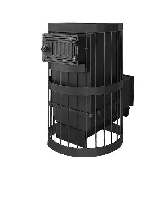 Банная чугунная печь Ураган Стандарт 12 (ДТ-3) укомплектована чугунной не герметичной дверцей Везувий ДТ-3. Закрытая каменка изготовлена из стали. Конвекционно-вентилируемый кожух "Стандарт" изготовлен из металлического прутка диаметром 6мм покрашенной черной термостойкой краской.