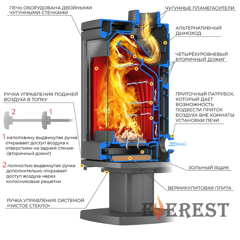 Печь-камин EVEREST Н12 – Идеальное решение для вашего дома. Надежная конструкция для комфортного отопления. EVEREST Н12 – это современная печь-камин, сочетающая в себе функциональность отопительного прибора и эстетику традиционного камина. Благодаря продуманной конструкции и качественным материалам, устройство обеспечивает эффективное отопление помещений площадью до 120 м².
