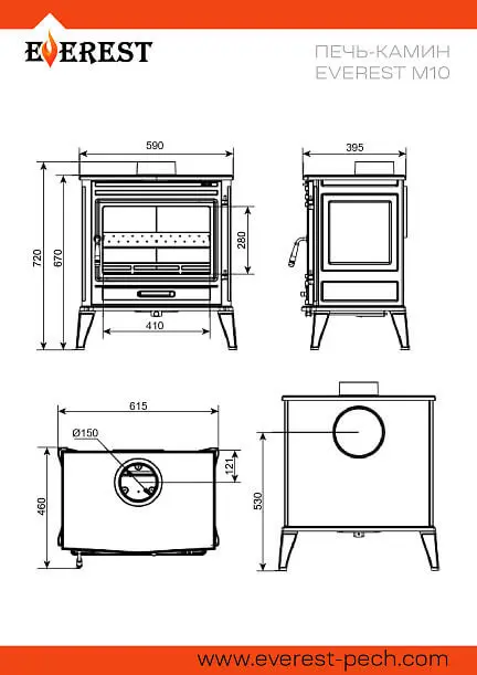 Печь-камин EVEREST М10 длительного горения, с двойным дожигом, отопительная мощность печи 10 кВт.