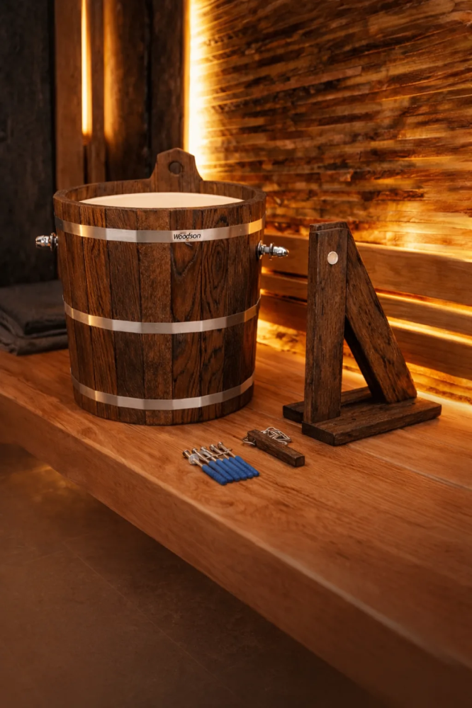 Обливные устройства Woodson — это сочетание классики и продуманной конструкции. Натуральный кавказский дуб, нержавеющая сталь и износостойкие материалы формируют изделие, рассчитанное на долгие годы использования в условиях высоких температур и повышенной влажности.